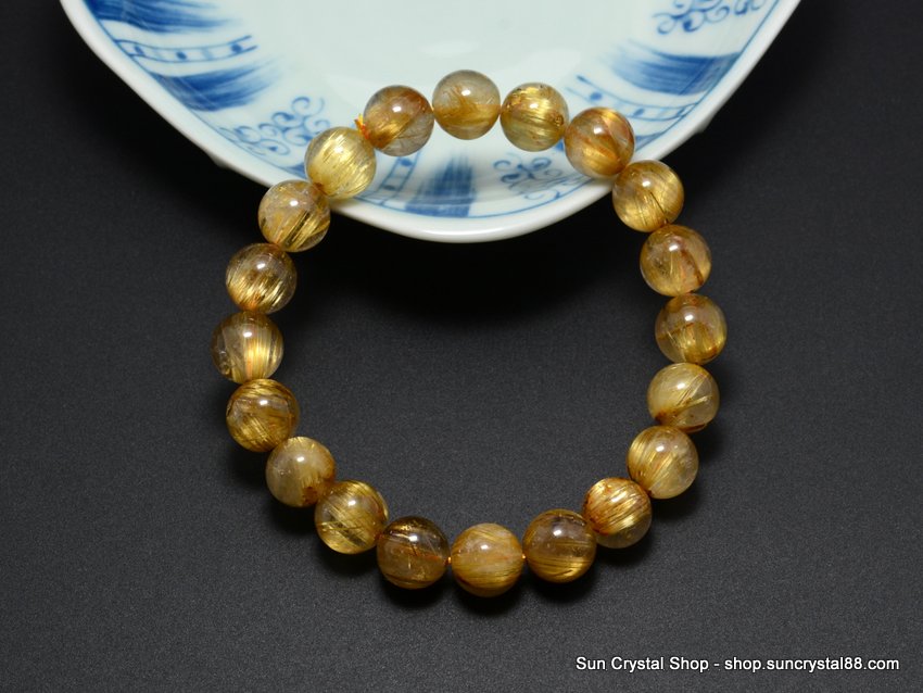 首頁 > 歷史售出館 > 手鏈區 > 頂級質量金黃耀眼鈦晶手珠9.8mm 招財聖物 罕見精品【已售出】